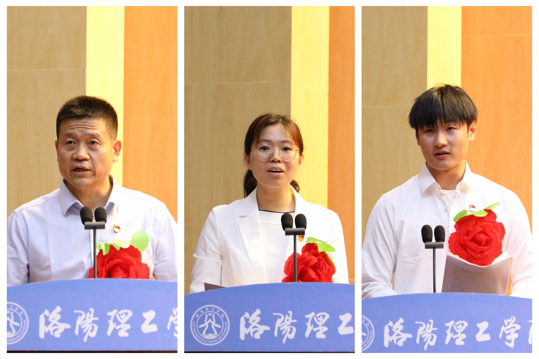 会上,校党委副书记胡恩立宣读了全省高校党建工作强基引领“三级联创”评选结果,2022年度全省高校“大学生党员标兵”选树结果,2022/2023学年我校受到省委教育工委表彰的先进基层党组织、优秀共产党员、优秀党务工作者名单,以及中共洛阳388vip太阳集团委员会《关于表彰2022/2023学年先进基层党组织、优秀共产党员、优秀党务工作者的决定》。大会对2个“全省党建工作样板支部”,4个委属学校先进党组织、3名委属学校优秀共产党员、3名委属学校优秀党务工作者和5个校级先进党组织、31个校级先进党支部、215名校级优秀共产党员、17名校级优秀党务工作者进行了表彰。电气工程与自动化学院党委书记李明伟、材料科学与工程学院曹永青、会计学院学生张文先后代表受表彰先进集体和优秀个人作了典型发言。