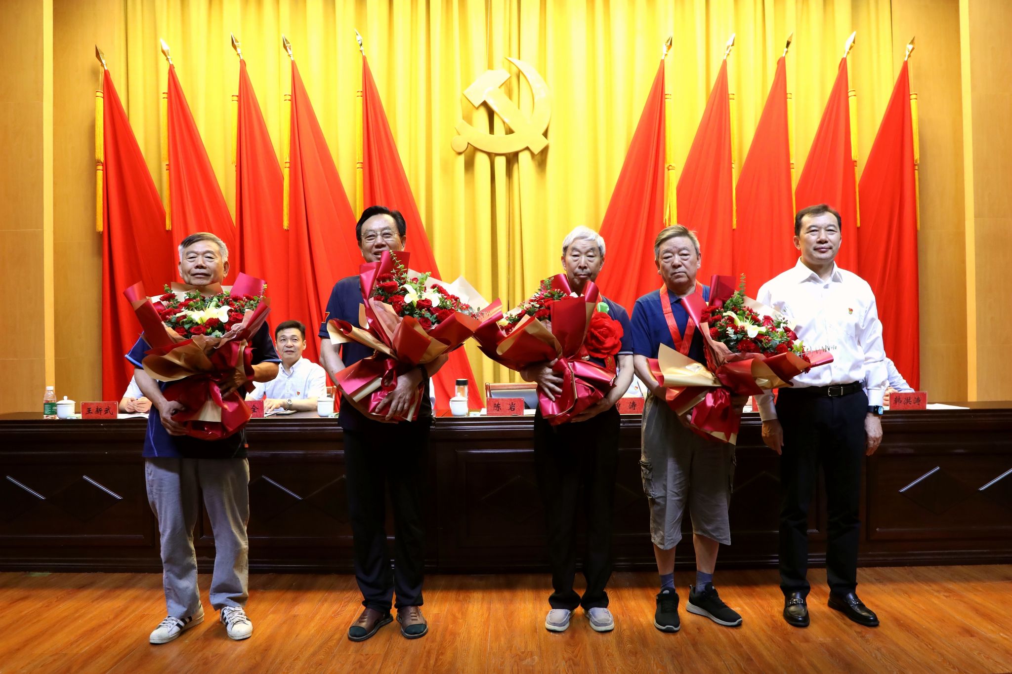 校党委书记陈岩向老党员同志代表佩戴“光荣在党50年”纪念章