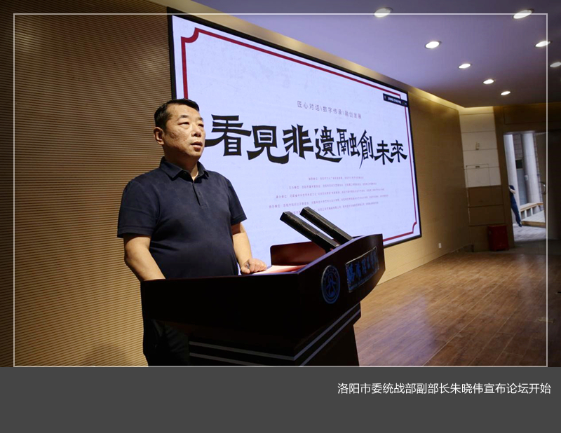 8月19日,“看见非遗 融创未来”论坛在我校九都校区艺术设计学院报告厅隆重举行。洛阳市委统战部副部长朱晓伟,洛阳市文化广电和旅游局副局长王丽娟,洛阳市文联副主席、洛阳市美术家协会主席张建京,我校校长张锐,党委副书记、工会主席曾涛出席论坛开幕式,相关政府、行业、企业代表参加了论坛。论坛由我校艺术设计学院负责人主持。