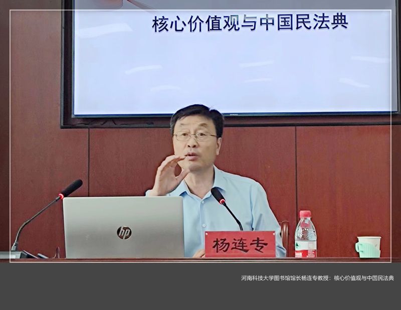 9月30日上午,我校邀请河南科技大学图书馆馆长杨连专教授作题为《核心价值观与中国民法典》的专题讲座,专题讲座在王城校区图书信息中心501会议室举行,我校图书馆全体人员参加讲座。