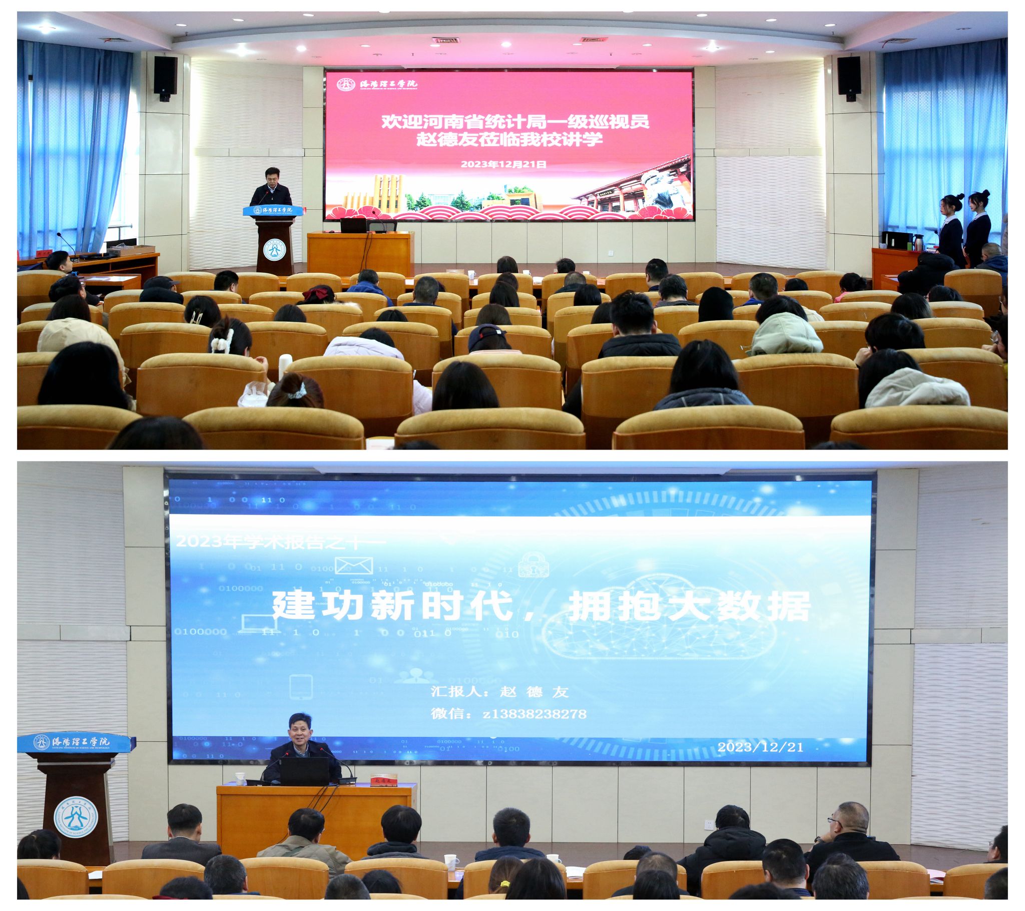 河南省统计局一级巡视员赵德友以《建功新时代,拥抱大数据》为题为我校师生作专题报告