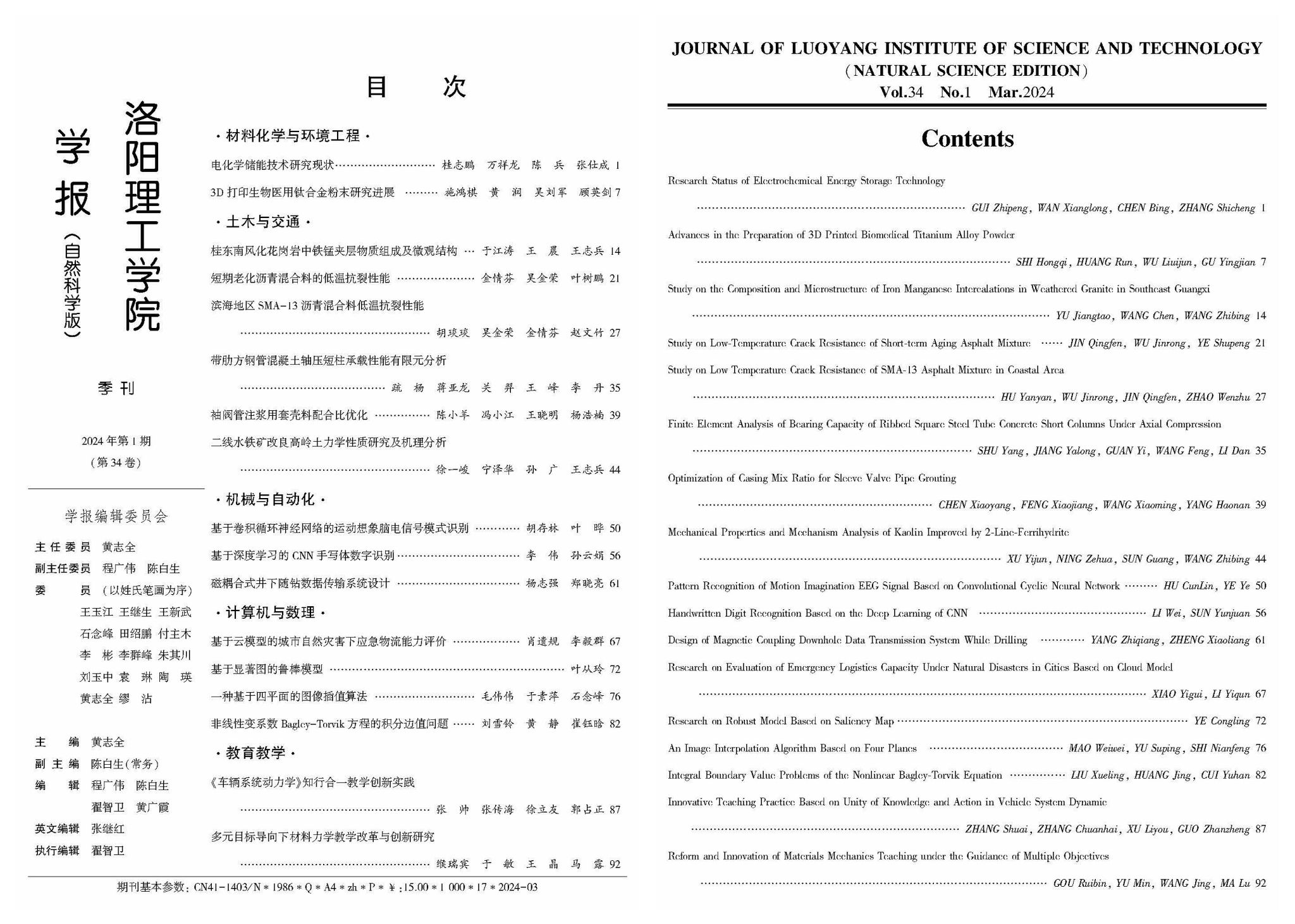 3月15日,《洛阳388vip太阳集团学报(自然科学版)》2024年第1期出版。本期共刊发学术论文17篇,为做好学术出版内容传播,现将论文的题目和摘要等内容展示。
