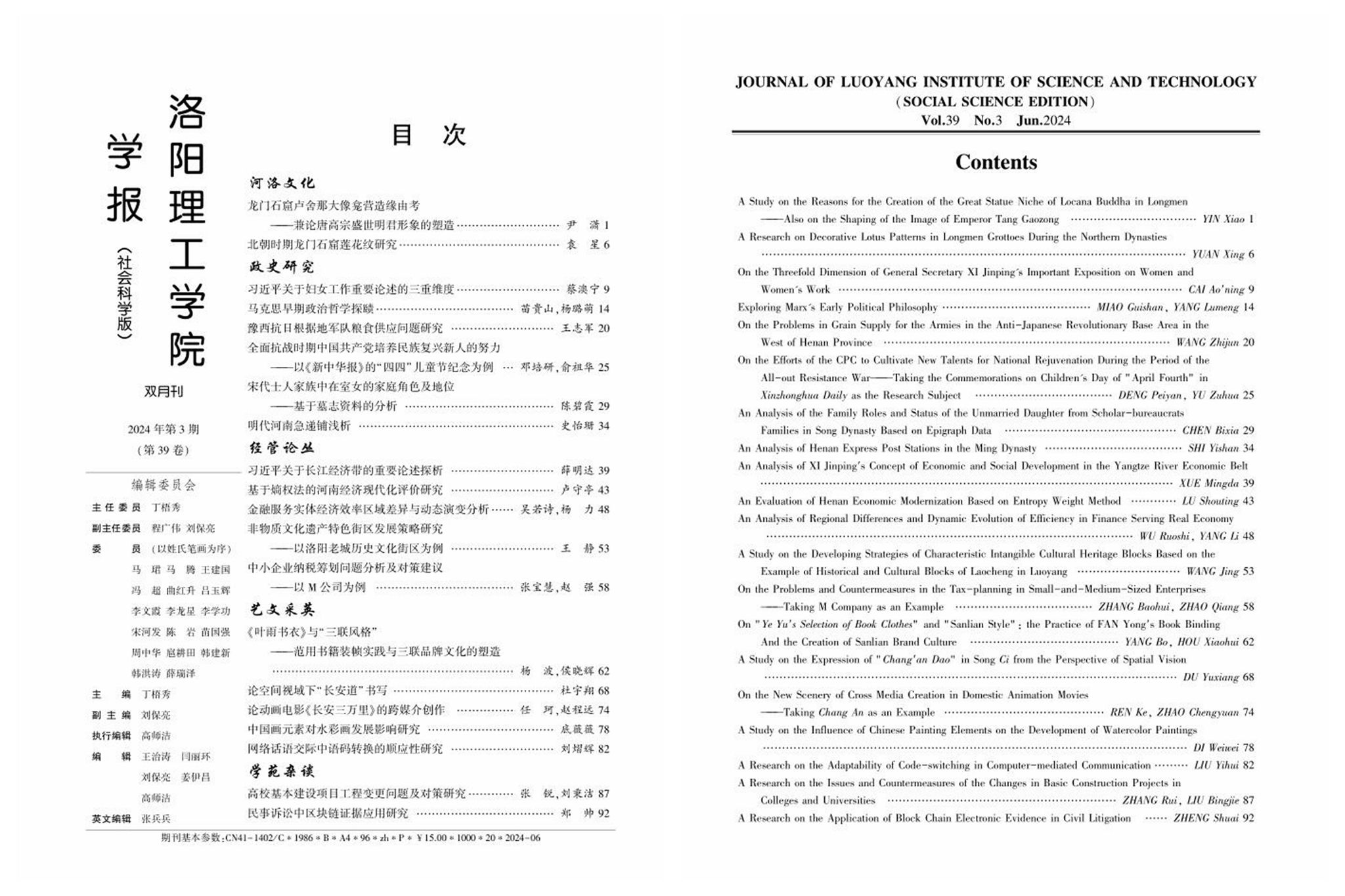 6月28日,《洛阳388vip太阳集团学报(社会科学版)》2024年第3期出版。本期共刊发学术论文20篇,为做好学术出版内容传播,现将论文的题目和摘要等内容展示。