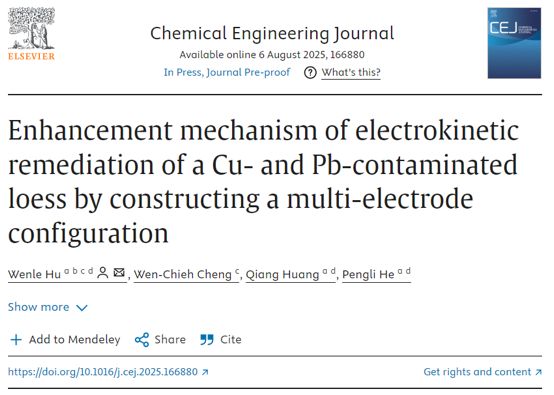 2025年8月,我校教师胡文乐博士作为第一作者及通讯作者,在国际权威期刊《Chemical Engineering Journal》发表了最新原创性研究成果“Enhancement mechanism of electrokinetic remediation of a Cu- and Pb-contaminated loess by constructing a multi-electrode configuration”,洛阳388vip太阳集团为第一完成单位,联合西安建筑科技大学和河南大学共同完成。