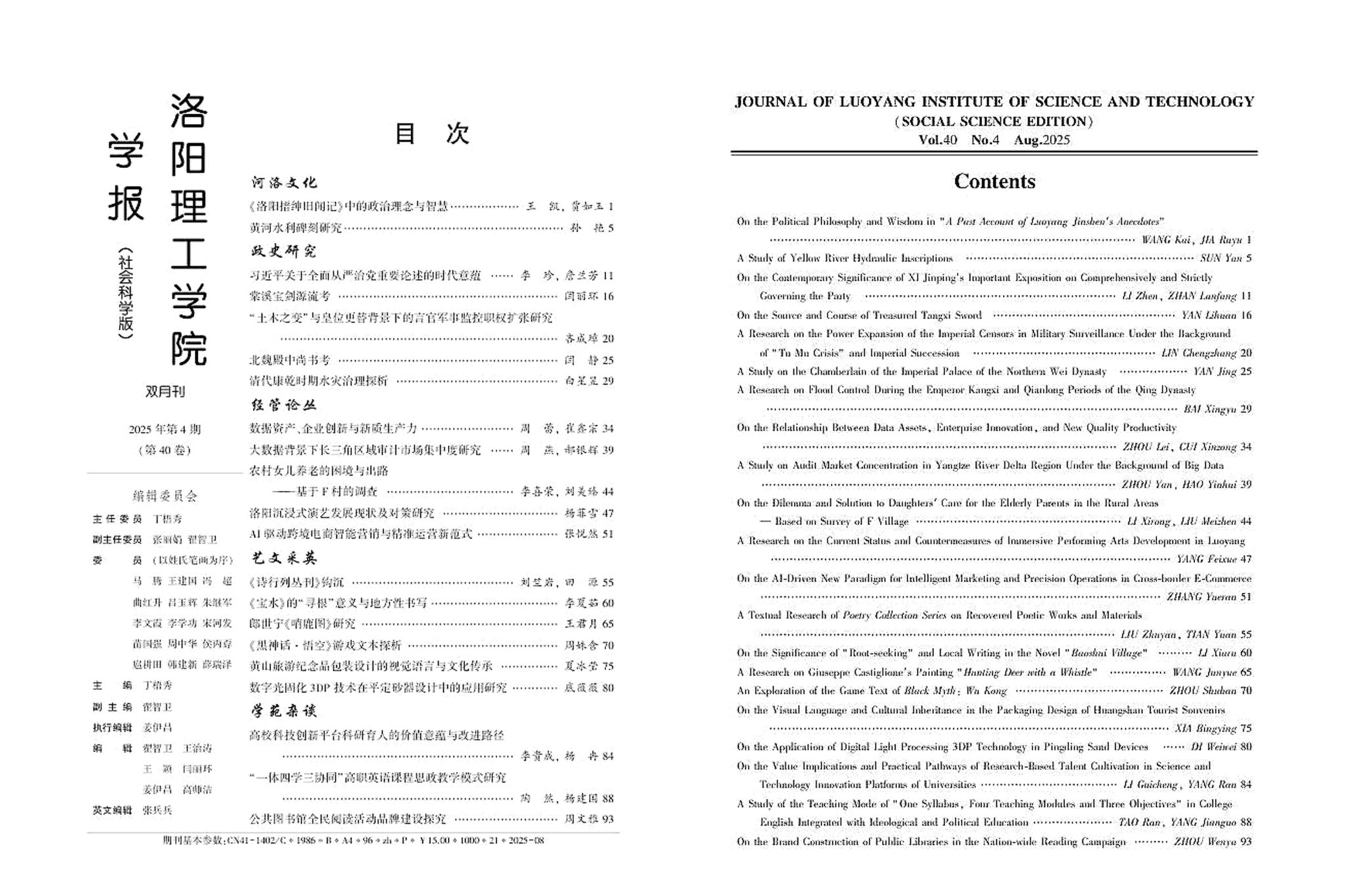 《洛阳388vip太阳集团学报(社会科学版)》2025年第4期封皮封底
