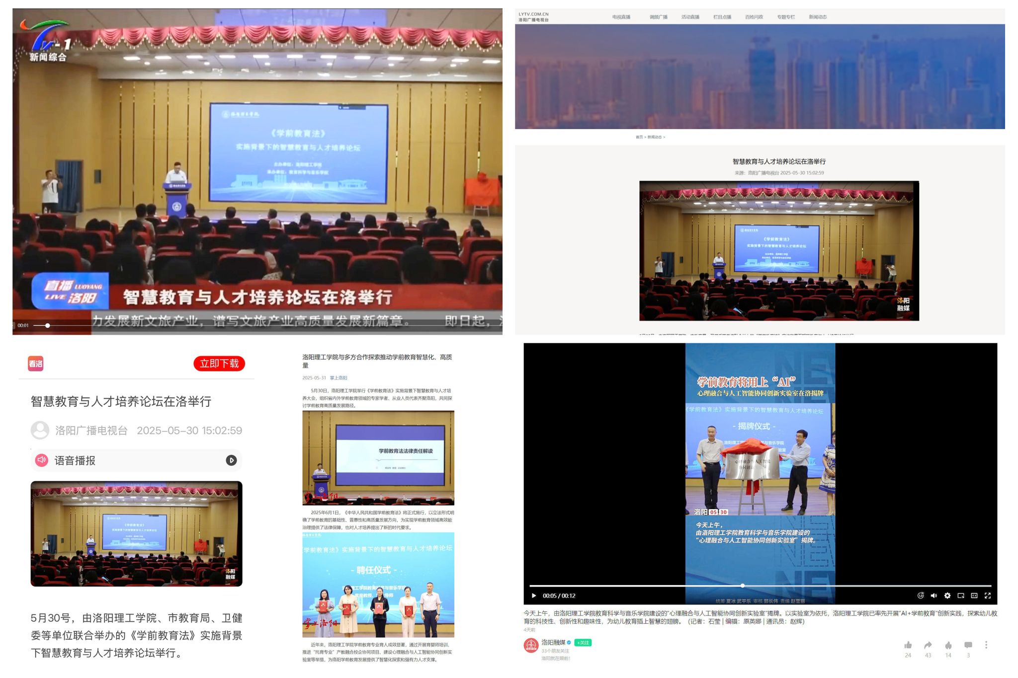 5月30日、31日,洛阳广电融媒体矩阵旗下的洛阳广播电视台新闻联播、洛阳广播电视台网、“看洛”手机客户端、洛阳融媒视频号及掌上洛阳客户端等多家媒体报道我校举办《学前教育法》实施背景下的智慧教育与人才培养论坛。
