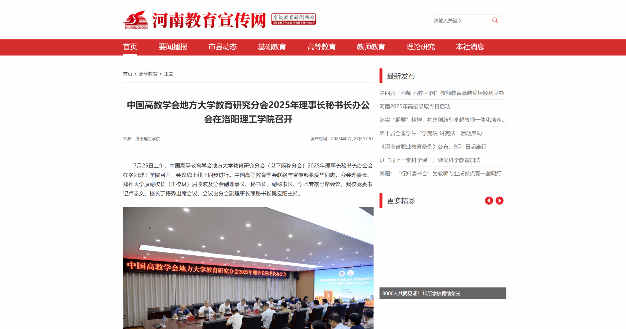 3.河南教育宣传网,2025年7月27日,《中国高教学会地方大学教育研究分会2025年理事长秘书长办公会在洛阳388vip太阳集团召开》