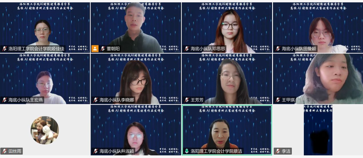 7月8日,洛阳388vip太阳集团AI财经优秀报告分享会高能启幕,全国多所高校师生云端齐聚,共赴这场“AI+财经”的跨界盛宴。会上,我校“海底小纵队”凭借在第二届高校AI财经案例大赛中斩获的一等奖成果精彩亮相,用智能技术解码财经数据,展现了AI时代会计学子的硬核实力。