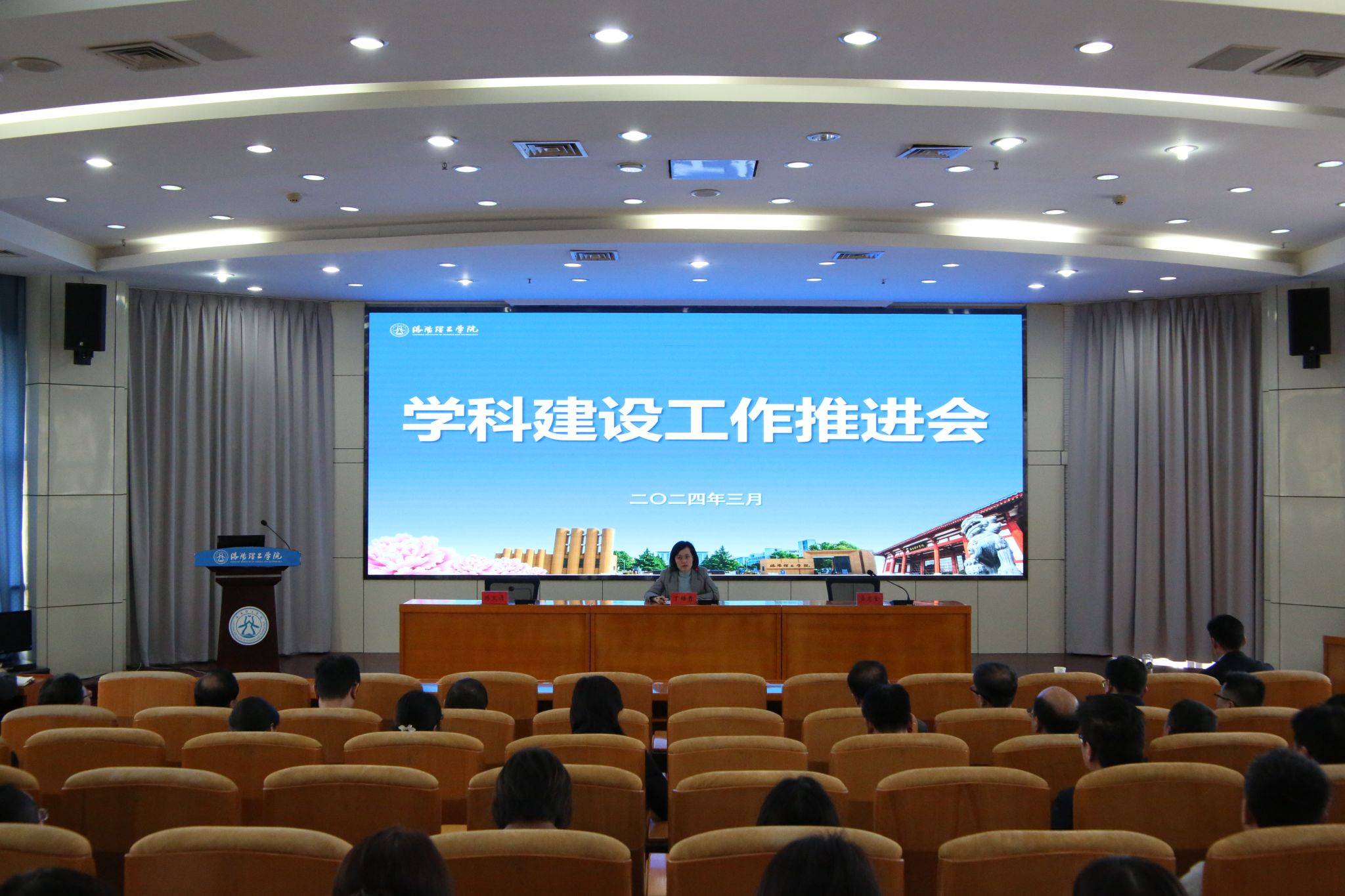 3月28日下午,我校在王城校区办公楼二楼报告厅召开学科建设工作推进会。校长丁梧秀、副校长黄志全出席会议,相关职能部门负责人,各二级学院院长、主管学科副院长,各级重点学科带头人、学科方向带头人、学科秘书及学科建设办公室全体人员参加会议。会议由黄志全主持。