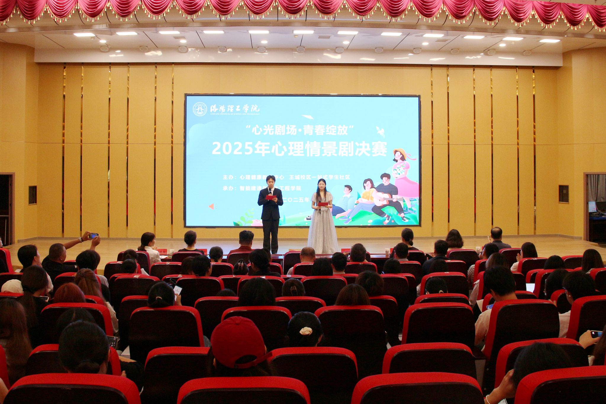 为进一步普及心理健康知识,引导同学们树立关爱自我、互助友好的积极心态,6月19日下午,我校在开元校区图书馆报告厅举办“心光剧场 青春绽放”2025年大学生心理情景剧决赛。党委副书记胡恩立出席决赛现场,相关职能部门负责人,各二级学院党委副书记、心理健康教育办公室主任,心理健康教育中心全体教师及学生代表观看比赛。