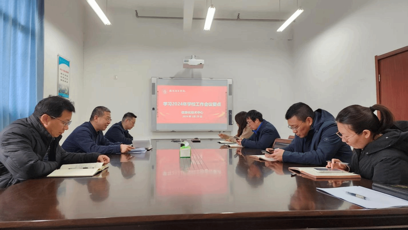 信息化技术中心 2月29日下午,信息化技术中心召开学习2024年学校工作会议要点学习会。传达了学校2024年工作会议的会议精神。会议指出,为学习贯彻落实2024年工作会议精神,信息化技术中心重点做好以下工作:一是加强信息化基础设施建设;二是推进教育信息化应用;三是提升网络信息安全保障能力;四是开展全域数据治理;五是促进信息技术与学科融合;六是扎实做好本科教育教学审核评估工作。会议要求,要始终坚持以服务学习者为中心,统筹运用数字化思维、理念和技术,充分发挥数据作为新型生产要素的作用,在“助学、助教、助管、助研”上发力,全面探索数字教育新机制新模式新形态,把数字资源的静态势能转化为教育改革发展的强大动能,以教育信息化支撑引领教育现代化。